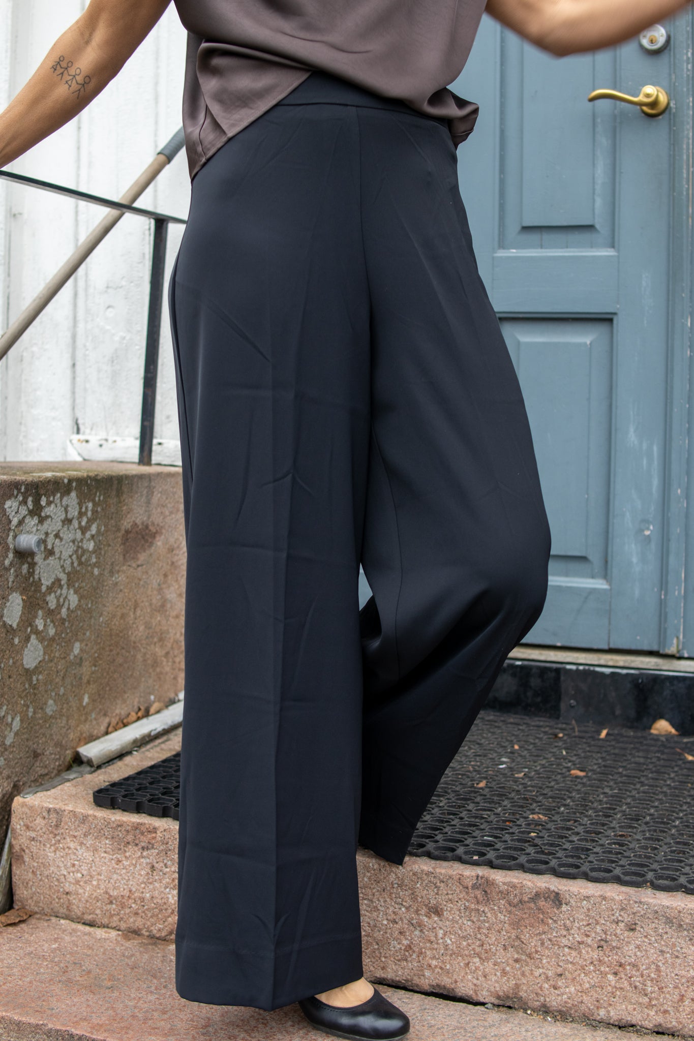 Marie buksen fra FV er en elegant og fin bukse, med vide ben. Buksen har en skjult glidelås på sidesømmen.