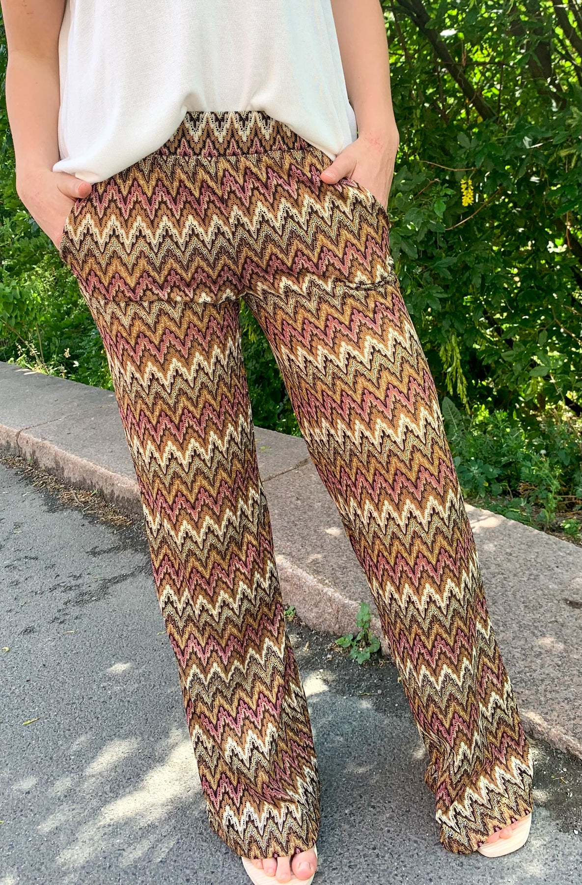 "Wideleg zig zag pant - multi color" fra Summum Woman er en nydelig vid bukse i zig zag mønster og metallisert tråd. Buksen har strikk i livet som gjør den behagelig å ha på. Style den med en enkel hvit t-skjorte for en kul look.