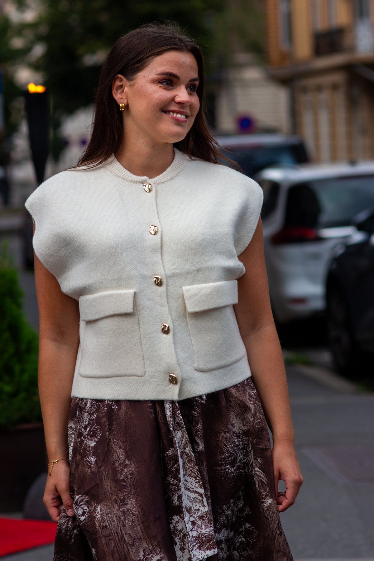 Vesten er perfekt over en skjorte, tynn genser eller kjole - denne vesten er et allsidig plagg som passer like godt til hverdags som til kontoret.