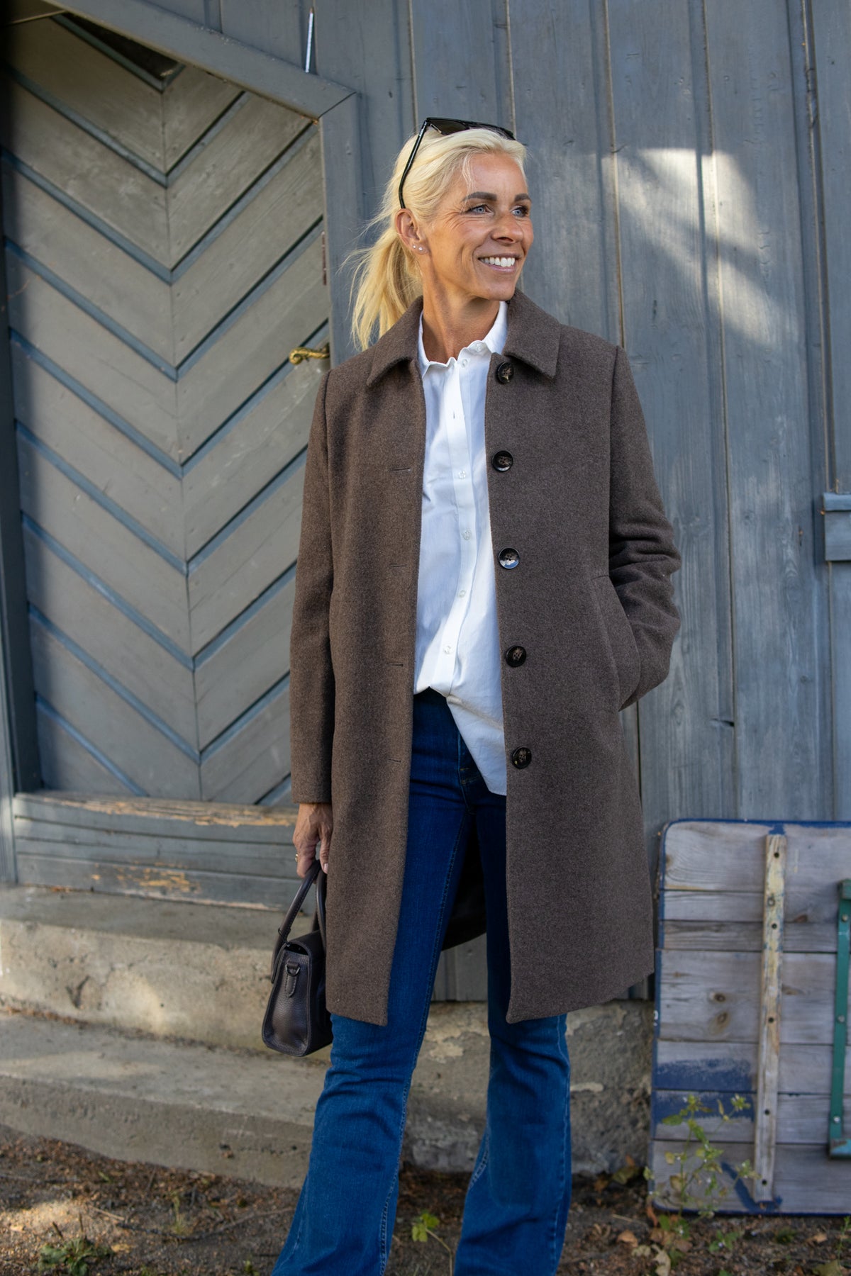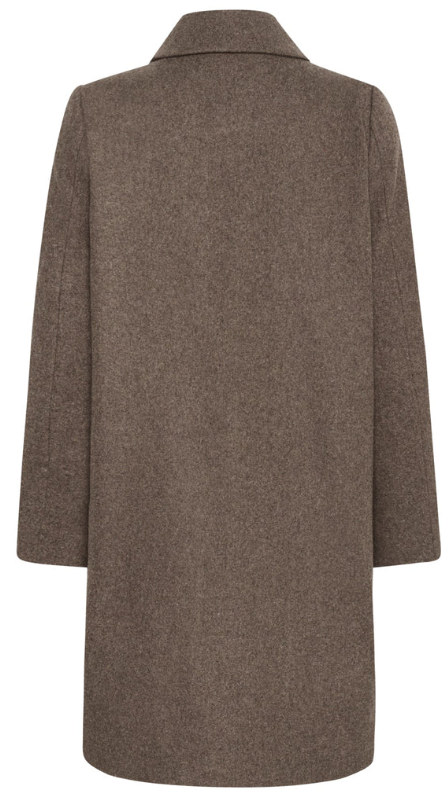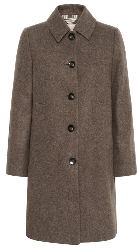 Kamillas Outerwear i fargen Dark Walnut Melange fra Part Two kombinerer tidløs stil med et bevisst materialvalg.