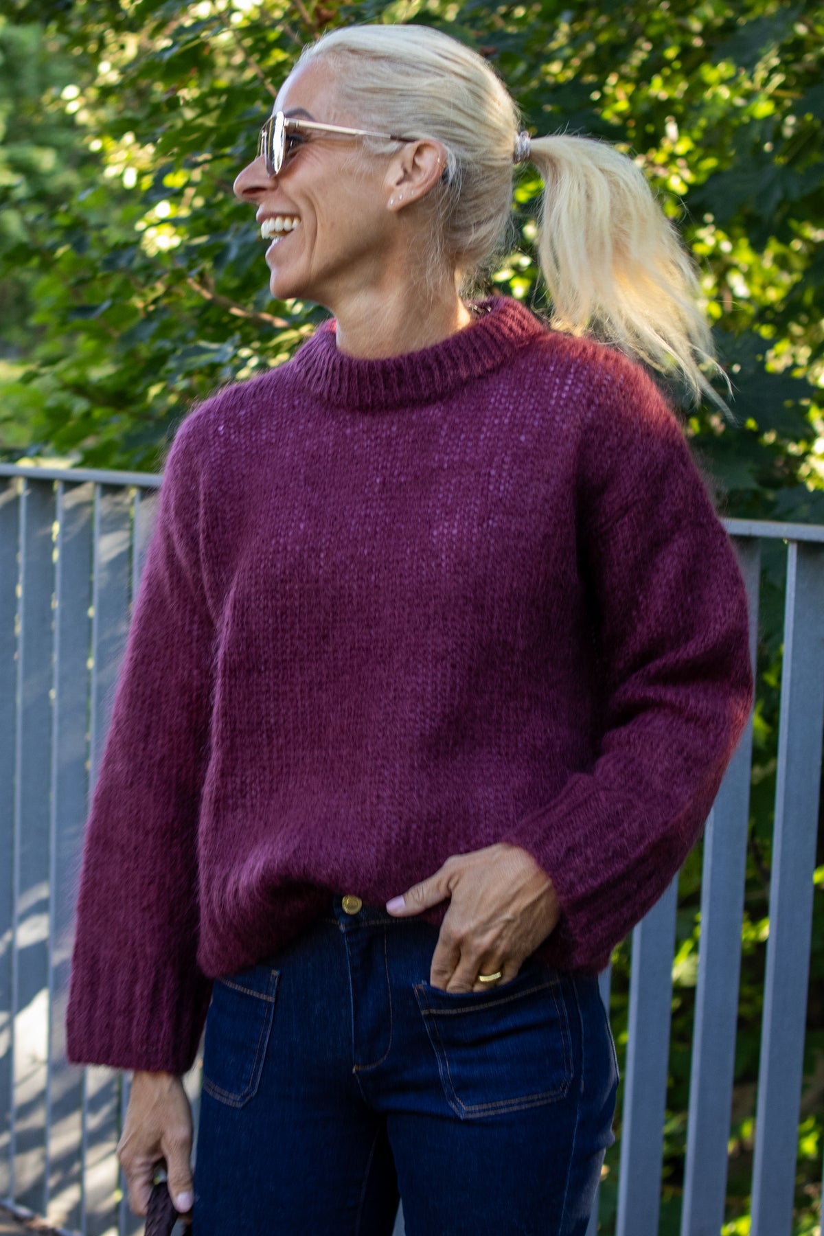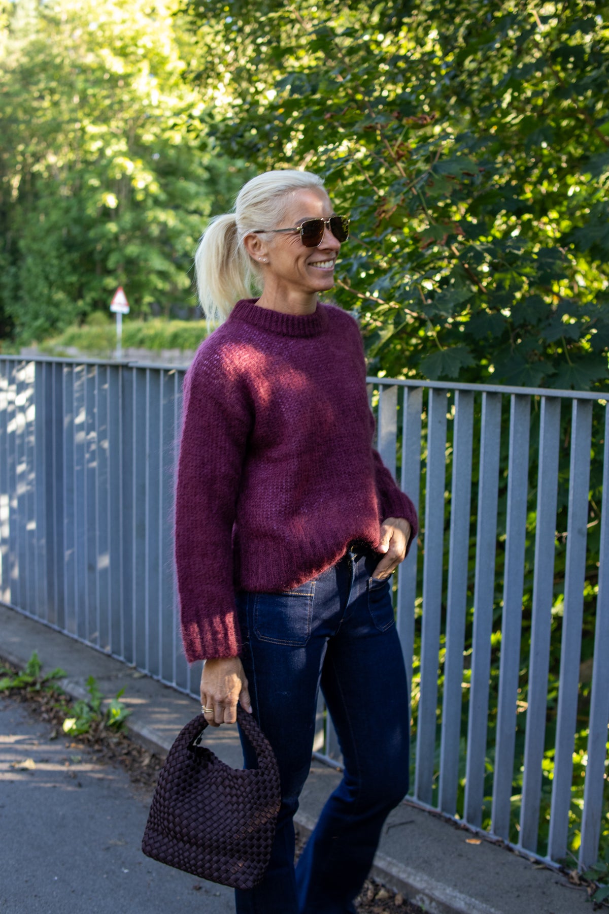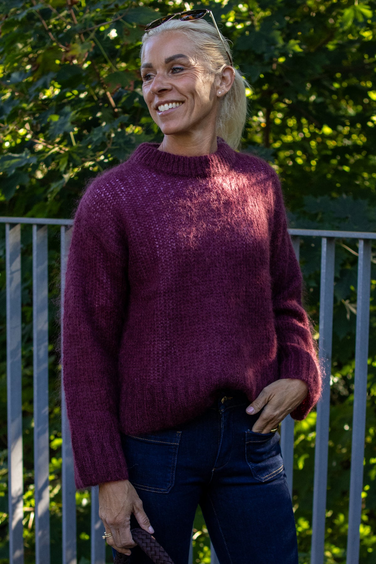 "Sille pullover - Tawny Port" er en deilig strikkegenser fra Part Two i ullmix. Løst strikket med rett passform, rund hals og ribbekant på ermer og rundt livet. Litt oversized fasong.
