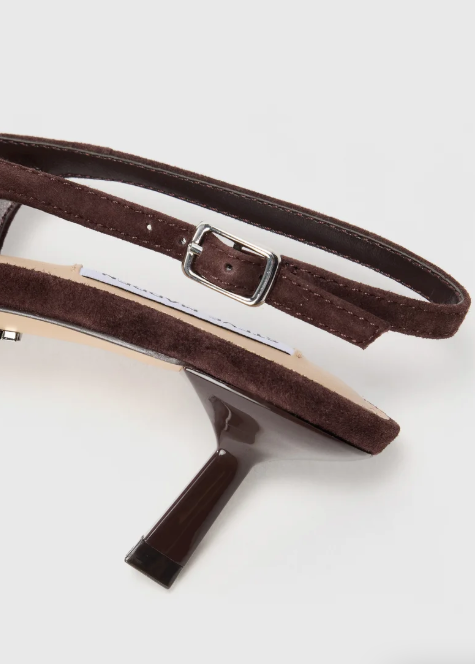 Korra fra Steve Madden er en elegant slingback-pumps i semsket overmateriale i fargen Ground Coffee. Skoen har spiss tå, mellomhøy hæl på ca. 6 cm og justerbar reim med spenne for perfekt passform. Innvendig har den imitert lærfôr og dekksåle, mens yttersålen er i slitesterkt syntetisk materiale. Et tidløst og sofistikert valg som passer til både jobb og fest.
