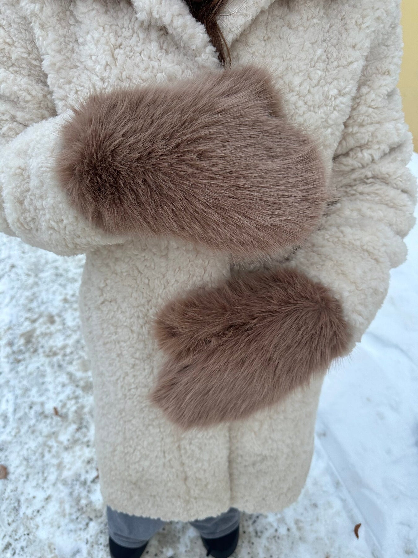Hold hendene varme og stilige med våre luksuriøse votter i fuskepels. Den brede, strikkede kanten gir et sofistikert uttrykk og sørger for at vottene sitter godt på hånden. Innsiden er myk og behagelig, slik at du holder deg varm selv på de kaldeste dagene. Perfekt både til hverdags og til fjellturer, og et must-have til vintergarderoben din.