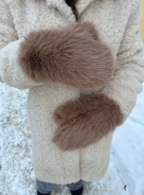 Hold hendene varme og stilige med våre luksuriøse votter i fuskepels. Den brede, strikkede kanten gir et sofistikert uttrykk og sørger for at vottene sitter godt på hånden. Innsiden er myk og behagelig, slik at du holder deg varm selv på de kaldeste dagene. Perfekt både til hverdags og til fjellturer, og et must-have til vintergarderoben din.