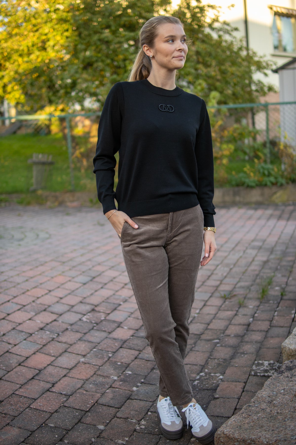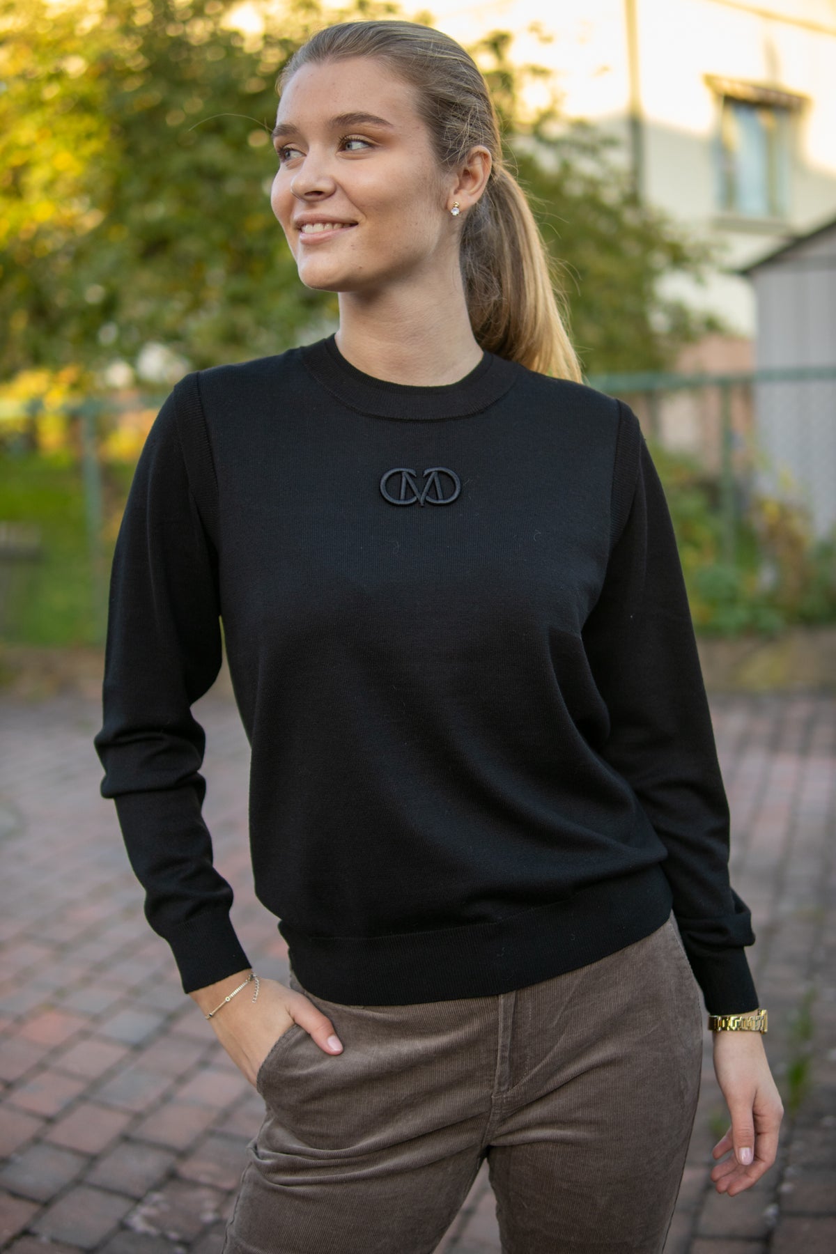 Denne genseren i viskosestrikk kombinerer komfort og eleganse. Det myke og pustende materialet gir en behagelig passform som passer både til hverdags og mer formelle anledninger. Den klassiske, runde halsen og de lange ermene gir et tidløst uttrykk, mens skulderdetaljene tilfører et moderne og sofistikert preg. Den diskrete, ton-i-ton-logoen på brystet fremhever kvalitet og gir et eksklusivt inntrykk uten å virke prangende. Resultatet er en allsidig og stilren genser som både ser bra ut og føles god å ha på.