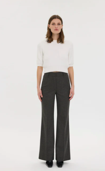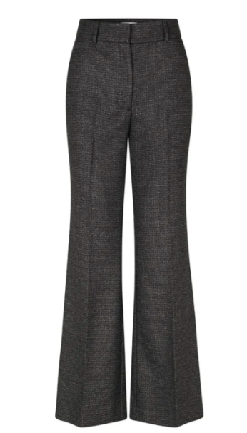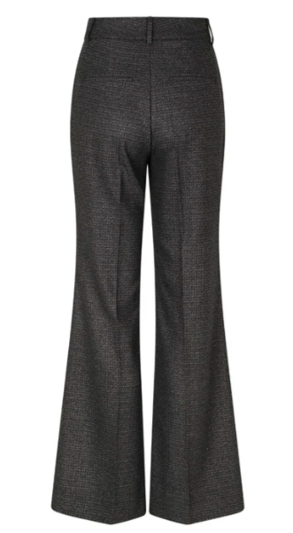 OliviaFV-buksen har en avslappet og utsvingt passform. Den høye midjen er formet for å sitte flatterende i livet, fremheve hoftene og lårene, og buksen vider seg elegant ut fra litt over knærne. Stoffet har en lett tekstur med diskret fargespill, som gir buksen en sofistikert overflate og et eksklusivt uttrykk – perfekt til både hverdags og mer oppdressede anledninger. De vide bena og den elegante silhuetten gjør det enkelt å style buksen på ulike måter.