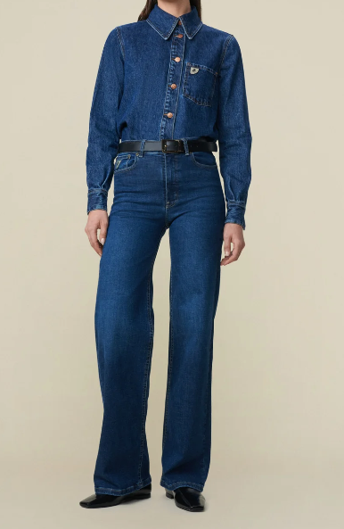 "Palazzo"-buksen fra Lois er en stilsikker og komfortabel hverdagsfavoritt. Den er laget i en dyp mørkeblå denim som gir et sofistikert uttrykk, samtidig som den er enkel å kombinere med både hverdagsplagg og mer pyntede topper. Buksen har en medium høy midje som gir god passform, og sitter smalt over hoftene før den faller i rette, vide ben som skaper en flatterende og moderne silhuett. Med fem klassiske lommer forenes funksjon og stil på en naturlig måte – perfekt for deg som vil føle deg både velkledd og komfortabel gjennom hele dagen.