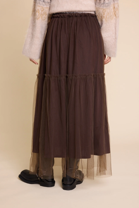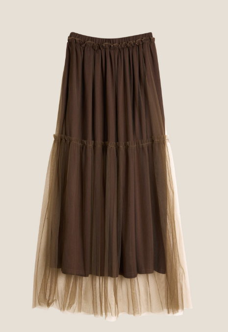 Hay Skirt er et feminint og elegant tyllskjørt med en flatterende A-linjeform og elastisk linning som gir en behagelig passform. Skjørtet er designet med et lett og transparent tyll-lag som gir en luftig og sofistikert look, mens den subtile strukturen og rynkede detaljene tilfører en moderne kant. Lengden gjør det enkelt å style til både hverdag og fest – bruk det med en strikkegenser for en avslappet stil eller med en bluse og hæler for et mer pyntet uttrykk.