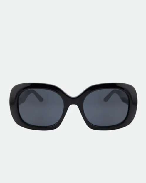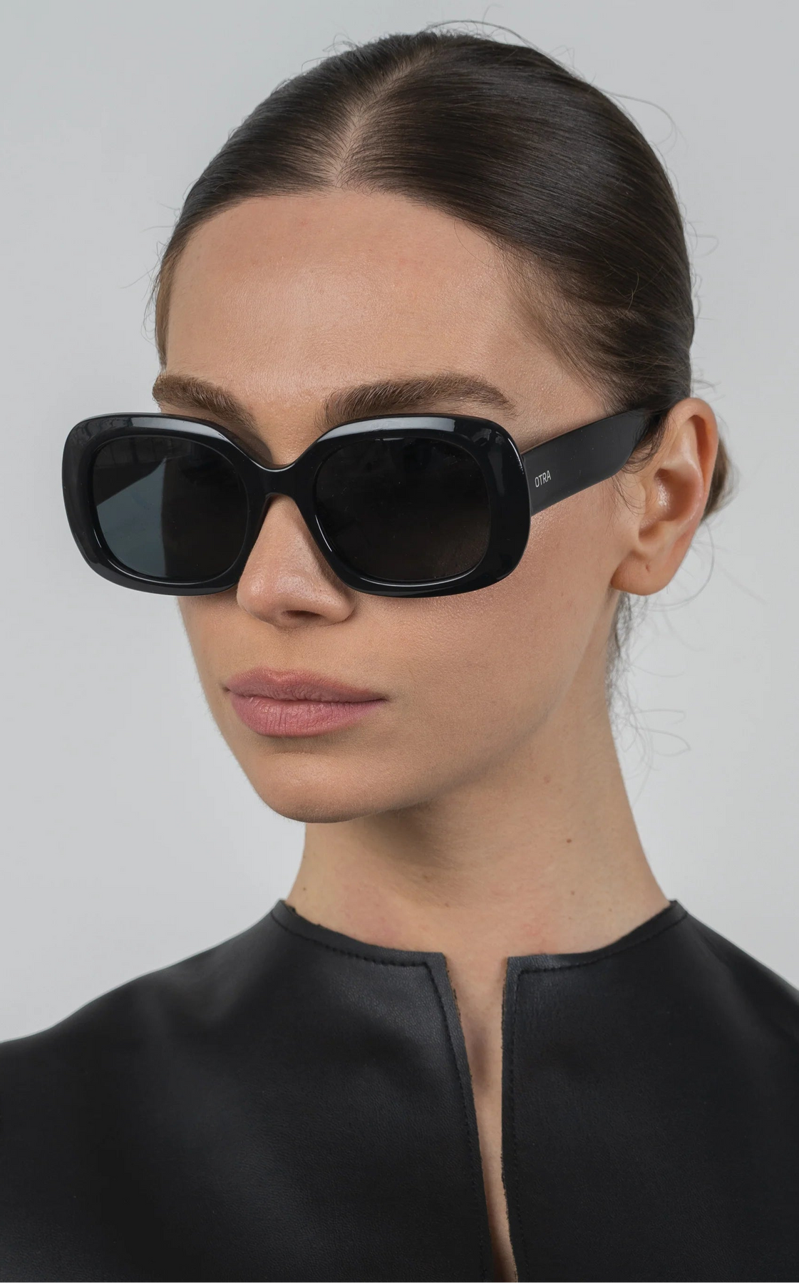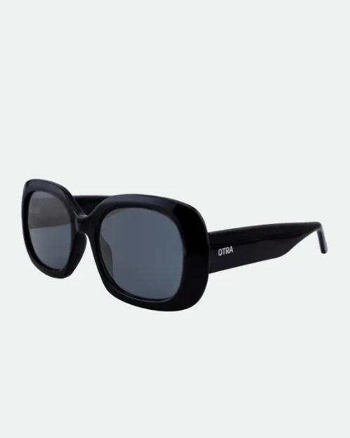 Valerie fra Otra Eyewear er en moderne og statement-preget solbrille med sort ramme og mørke glass. Den oversized fasongen gir et trendy og sofistikert uttrykk, mens logoen på siden tilfører et eksklusivt preg. Solbrillen kombinerer stil og funksjon med 100 % UV-beskyttelse – perfekt for solrike dager året rundt.