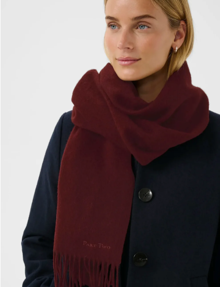 Dette myke skjerfet fra Part Two er laget av 100 % ull – et lett, men varmende materiale som puster godt. De fine frynsene i endene gir et delikat uttrykk. Perfekt for kjølige dager, enten du bruker det løst rundt halsen eller tett inntil for ekstra varme.
