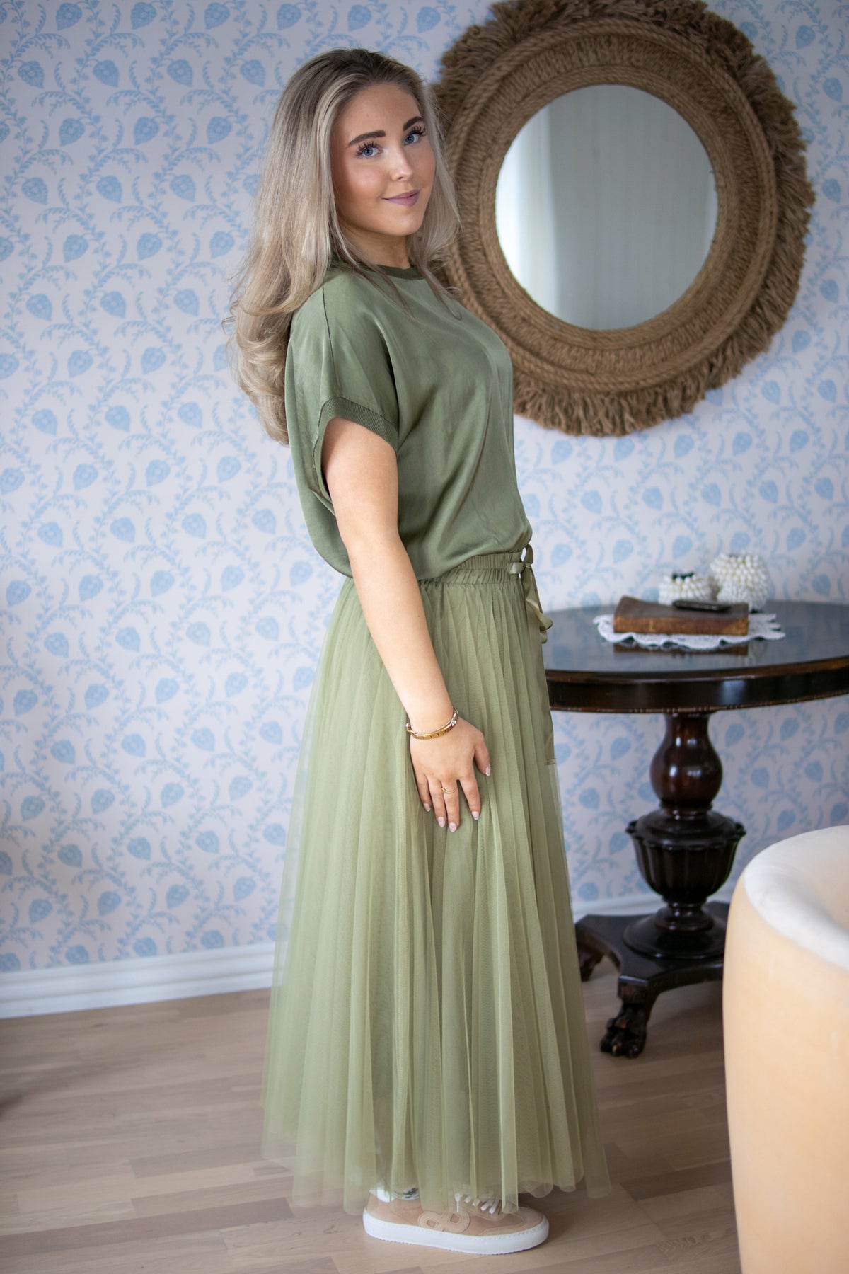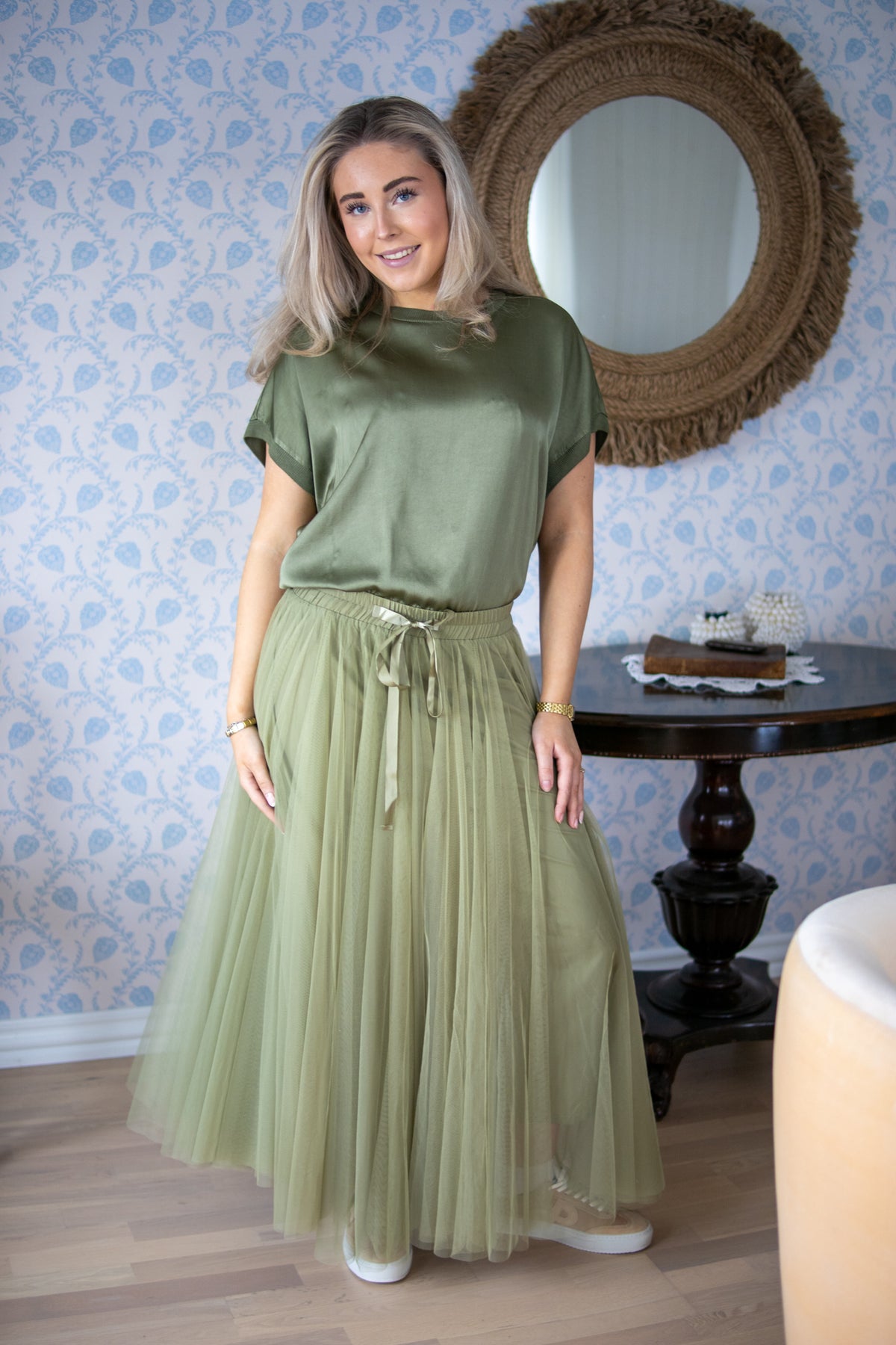 Nydelig topp fra From Paris with love i viscosekvaitet. Toppen har ribbekant på armer, bol og rundt hals gir et ekslusivt preg sammen med den noe blanke kvaliteten. Størrelsen er one size og vil passe i hovedsak fra S-L.